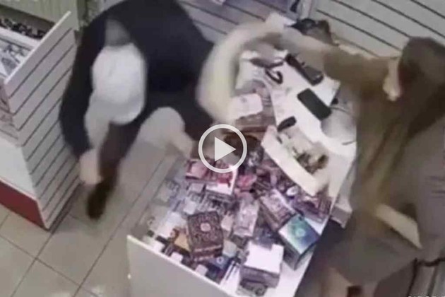 Video: Entró a robar en un sex shop y la empleada lo golpeó con un particular elemento