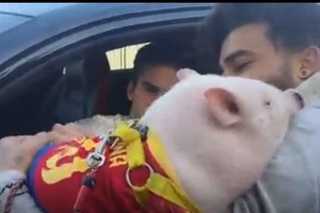 Sorpresivamente, uno de ellos se ha acercado a Riqui Puig con un cerdo. El jugador azulgrana firmó la camiseta que llevaba puesta el animal sin inmutarse.