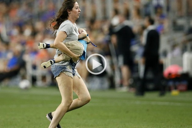 A los 70 minutos del partido, el niño, llamado Zaydek, ingresó a la cancha y su madre, Morgan Tucker, notó inmediatamente lo ocurrido y no dudó en salir disparada detrás de él.