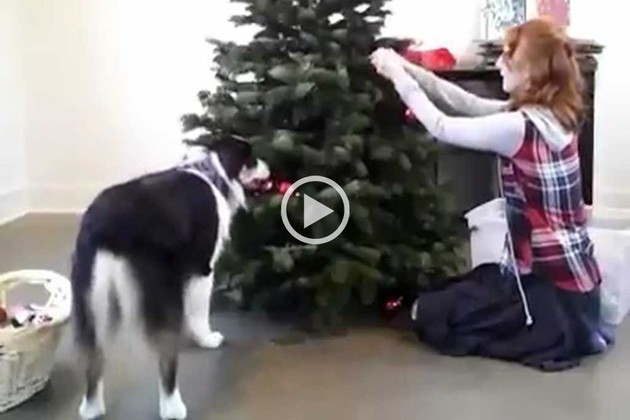 Circula por las redes sociales esta secuencia que muestra a un pastor ovejero australiano ayudando a armar el arbolito.