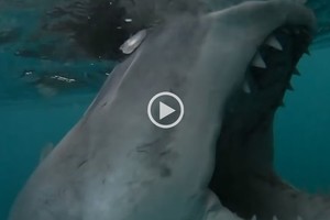 Al observar el hecho, uno de los hermanos sumergió su cámara deportiva para poder grabar imágenes y logró retratar al tiburón mordiendo el motor del bote.