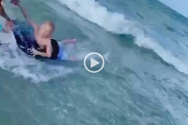 Como se muestra en las imágenes, el escualo se encontraba a escasos metros del pequeño antes de que este fuera arrastrado hacia la seguridad de la orilla por el oficial.