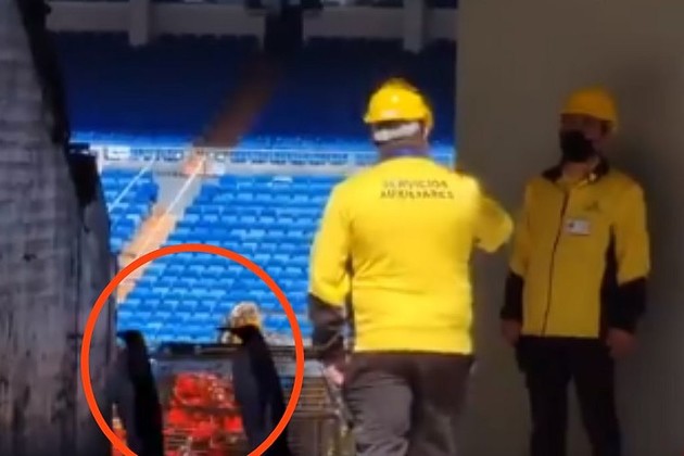 La refacción del Santiago Bernabéu ya lleva varios meses de progreso con el objetivo de darle más usos al campo de juego del estadio cuando el Real Madrid no esté disputando partidos a partir de un sistema de césped retráctil. Pero en las últimas horas, llamó la atención un video que nada tiene que ver con las obras y rápidamente se viralizó: aparecieron dos pingüinos caminando tranquilamente por el histórico recinto deportivo.