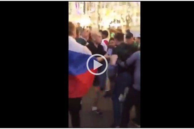 Las imágenes muestran cómo un grupo de personas se enfrasca en una pelea a las afueras de un estadio. Un turista oriundo de México interviene en la disputa física e intenta separar a los involucrados. Su extraña palabra desató la risa de miles de usuario.
