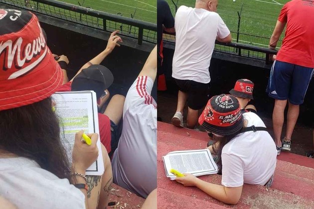 La pasión del fútbol no entiende de fechas ni de exámenes, eso quedó a la vista en la cancha de Newell’s en la que un usuario de Twitter compartió fotos de una joven que estudiaba a la espera de que inicie el partido contra Independiente.