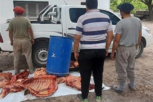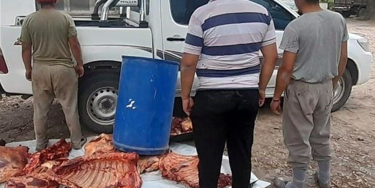 Al inspeccionar la parte trasera del vehículo, los efectivos hallaron bolsas de nylon que contenían distintos cortes cárnicos, entre ellos una cabeza, dos paletas, dos cuartos, un cogote, un espinazo y dos costillares. También se encontraron dos cuchillos ocultos en el vehículo. Trasladados a la Sección N° 13 de la Guardia Rural "Los Pumas", se notificó a los ocupantes del vehículo por el delito de abigeato. El producto cárnico fue incinerado tras ser evaluado por un médico veterinario, y el vehículo fue secuestrado por disposición de la Unidad Fiscal de la localidad. Los policías continúan con la investigación para identificar a la víctima del delito.