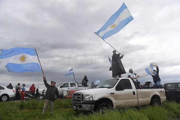 La manifestación se dio en medio de una fuerte presencia policial en el lugar, pero con productores muy molestos porque las tomas se vienen sucediendo en distintos puntos del país.