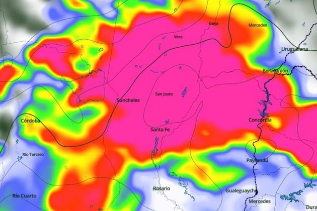 La tendencia es "bastante importante" sobre la franja central del país, especialmente en "el centro de Santa Fe, centro de Entre Ríos, que pueden llegar a tener los acumulados más importantes que se puede dar el domingo".