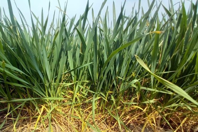 Lote con trigo; síntomas de déficit hídrico, en el noroeste del departamento Castellanos. Foto: SEA