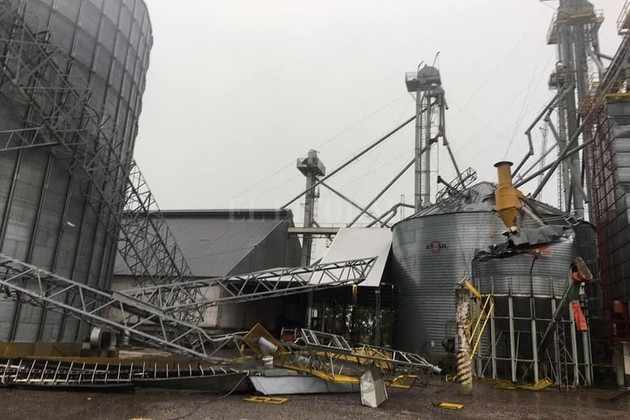 “La fuerte tormenta que afectó esta zona voló los redler y gracias a dios se citaron los burlones y las norias se salvaron. Los redler cayeron sobre dos silos, uno con maíz y uno con trigo, aplastando los vino superiores. Por suerte no había ya gente trabajando”, explicó Weder.