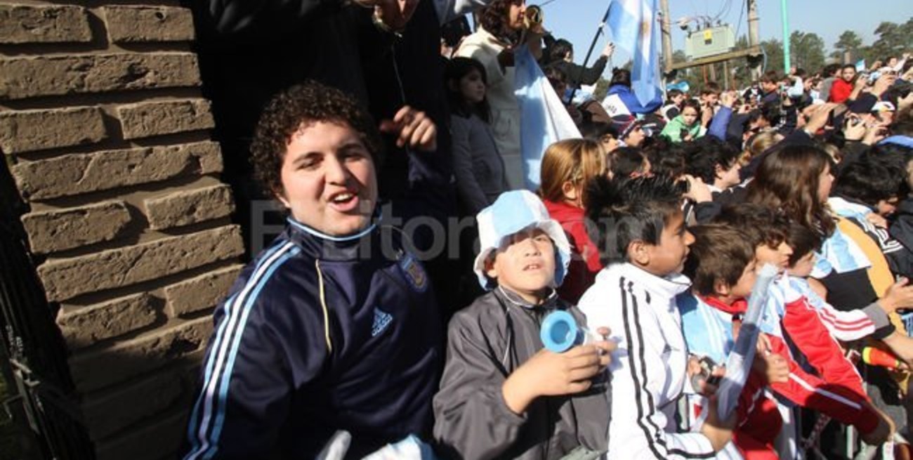 En auto con banderas celestes y blancas acompañaron el colectivo que trasladó a los jugadores para darles el aliento antes del partido de mañana frente a Colombia.