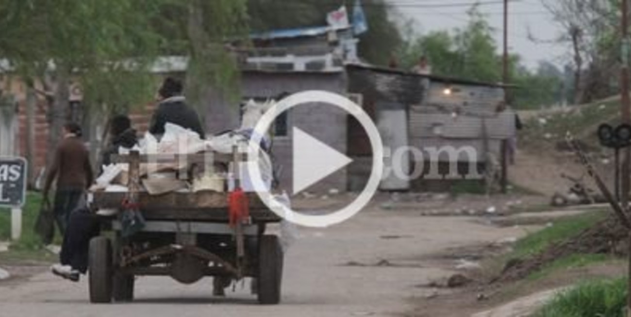 Vivir del cirujeo. Muchas familias del barrio recorren la ciudad en carros juntando bolsas de basura, que luego desarman para ver qué pueden vender y, en muchos casos, qué pueden comer.