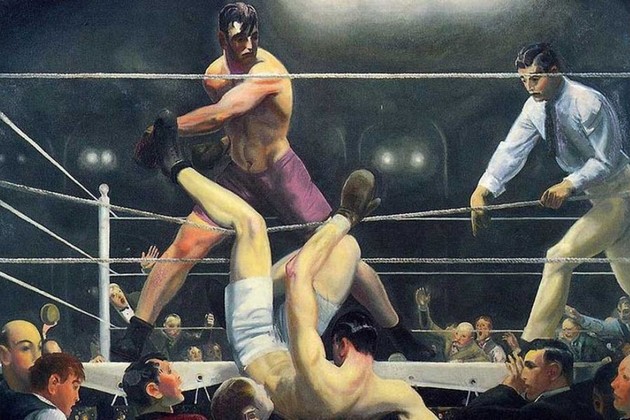 En el tercer episodio de la octava temporada de Los Simpson, Homero convertido en boxeador arroja fuera del ring a su contrincante y la escena se congela en el óleo a la tela que había gestado el pintor y litógrafo George Bellows.