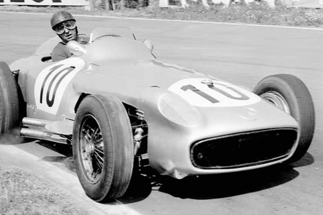 En 1954 vuelve a correr para la marca, en equipo con Stirling Moss, gana cuatro Grandes Premios y su tercer título al comando de la famosa "Flecha de Plata", para volver a lograr los títulos de 1956 y 1957.