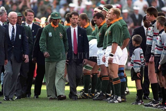 Sin embargo la gran figura del momento, el personaje al que todos los periodistas seguían, no era un jugador de rugby. Nelson Rolihlahla Mandela en ese momento tenía 76 años, veintisiete de ellos pasados en prisión. Cinco años antes del mundial había sido liberado, desde mayo de 1994 era el Presidente y en esos días de junio jugaba su propio mundial. La jugada era arriesgada. Convertir a los Springboks, uno de los emblemas de la Sudáfrica blanca y racista, en prenda de unión para toda la Nación. Mandela, como buen estadista, arriesgó y ganó. La Copa del 95 y el lema “Un equipo, un país” fueron un gran impulso en el proceso de integración luego del horror de la segregación racial. Un proceso que todavía continúa.