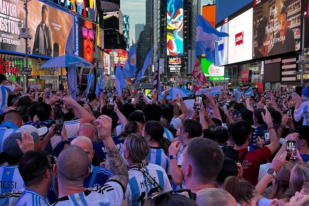 En la víspera del partido de semifinales con Canadá, Time Square con su calidez, sus luces y el asombro de los visitantes de todo el planeta, asistió a otra fiesta popular y futbolera argentina.