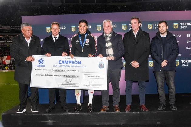 La Confederación Sudamericana de Fútbol, junto con la Asociación de Fútbol Argentino, entregó en la noche de este último viernes la suma de 500.000 dólares al Club Atlético River Plate, tras haberse consagrado campeón del Torneo de la Liga 2023. Así, el "Millo" se sumó a los equipos campeones en sus respectivas ligas, que reciben este premio monetario otorgado por la CONMEBOL, juntos con sus Asociaciones Miembro. El objetivo de este reconocimiento es elevar la competitividad de los torneos locales y fortalecer a clubes.