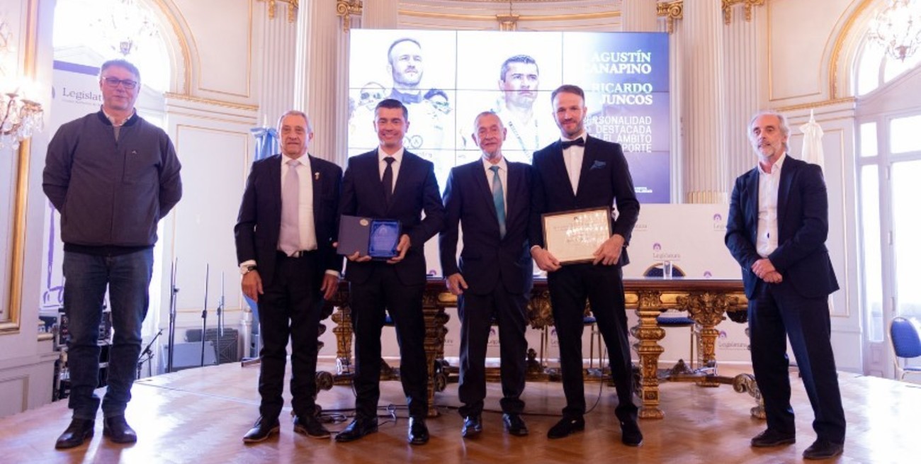 El corredor automovilístico Agustín Canapino y el jefe de la escuadra de IndyCar Ricardo Juncos recibieron, en la Legislatura porteña, la distinción de Personalidad Destacada del Deporte en reconocimiento a cada una de las trayectorias que recientemente hizo que compitieran en la serie de los Estados Unidos con una brillante actuación.