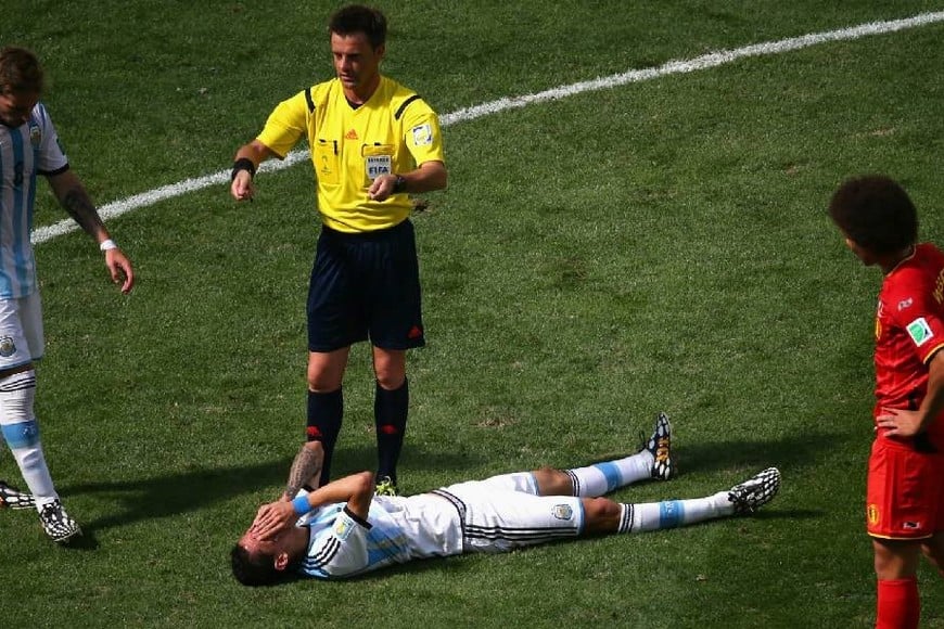 Sin embargo, la maldición de las lesiones en momentos claves volvería a pesar sobre él. En cuartos de final ante Bélgica debió ser reemplazado por un desgarro en el primer tiempo del partido. De todos modos, contado por el propio Di María, él estaba para jugar la final ante Alemania. Si se infiltraba no sentía molestia alguna.