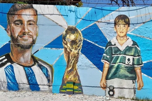 En la obra puede verse una imagen actual de Tagliafico, la Copa del Mundo y también una imagen del futbolista cuando era chico y vestía los colores del Club Atlético y Social Villa Calzada.