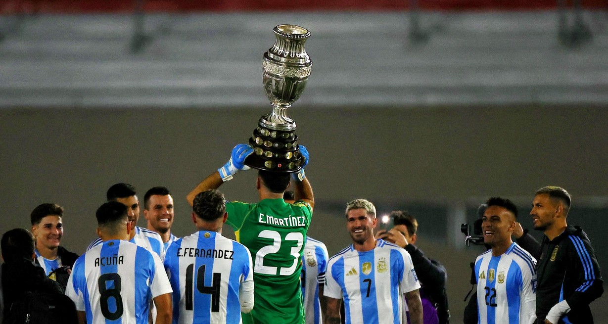Emiliano Martinez sostiene la Copa. Fotos: Reuters.