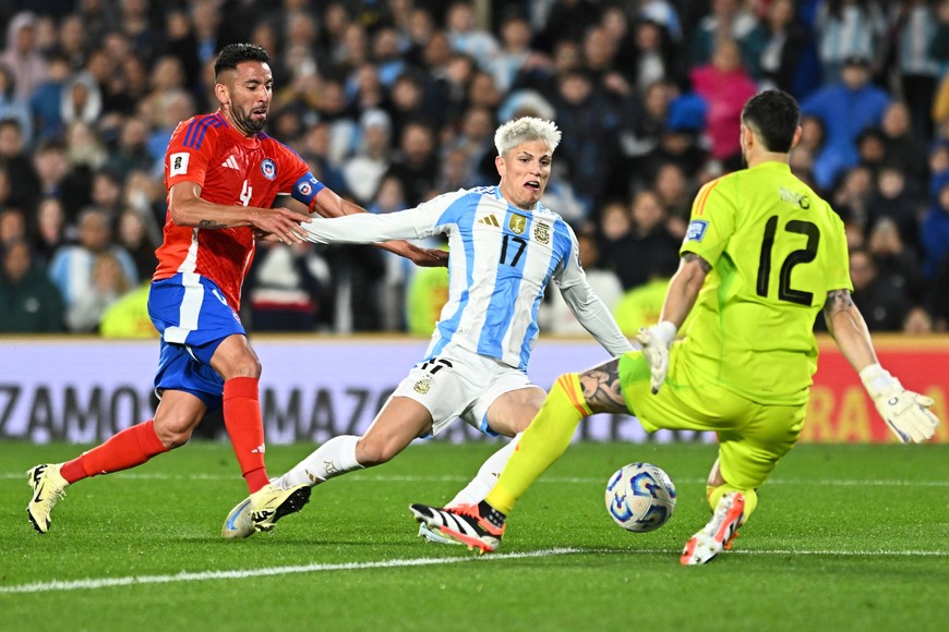 Sin embargo, Chile tuvo una y el palo salvó a Argentina. Era ya el tiempo adicionado al reglamentario cuando fue Catalán a buscar el centro pasado desde la derecha y su cabezazo se estrelló en el palo izquierdo del Dibu Martínez. Argentina hizo el gasto, pero no le alcanzó para sacar una ventaja que merecía en ese primer tiempo más allá de ese susto en el final.