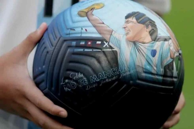 Agüero saltó al campo de juego con una pelota que tenía el rostro de Maradona, uno de los máximos ídolos de Napoli y campeón del mundo con la Selección Argentina en el Mundial de México 1986, y la famosa frase: "La pelota no se mancha", aquella que esbozó Pelusa en su partido despedida en La Bombonera.