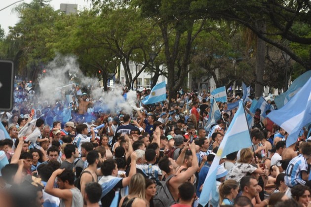 Cientos de personas se congregaron en la esquina que forman las calles Rivadavia y Bulevar Gálvez para alentar a la selección nacional. Mientras otros tantos daban vueltas por la ciudad con bocinas y cánticos.