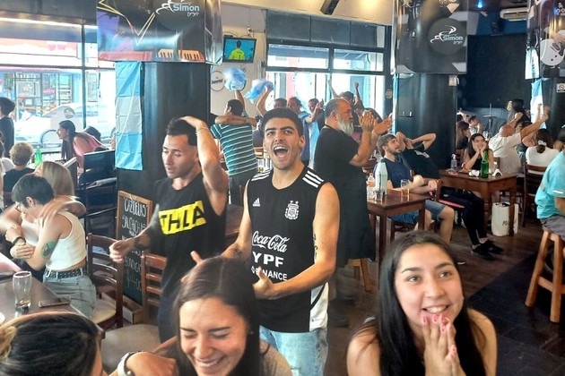 Más tarde, una mujer pasó por la vereda del bar y observó el resultado del partido sin darle demasiada importancia. Adentro, todo fue alegría, risas y satisfacción. La salida de Mac Allister se recibió con aplausos. El nacido en Santa Rosa fue clave para que Argentina consiga tres puntos al anotar al comienzo del complemento.