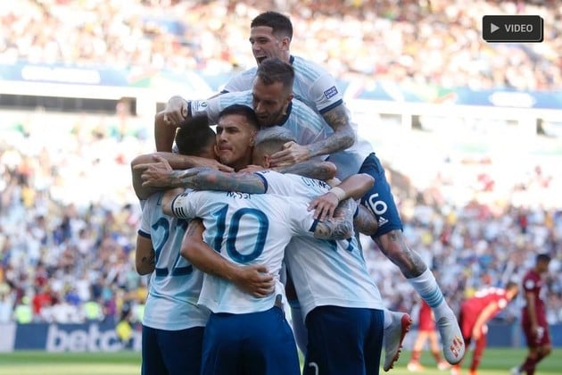 El conjunto albiceleste abrió el marcador gracias a un desvío de taco del delantero Lautaro Martínez, a los diez minutos, tras una volea de Sergio Agüero, a la salida de un córner