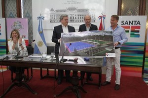 Pero además de eso, lo notable de la tarde en el Salón Blanco de Casa de Gobierno, que estaba colmado con más de 200 personas (muchas de ellas, jugadoras, entrenadores y profes), fue el anuncio que realizaron las autoridades presentes, entre ellos, el Ministro de Gobierno y Reforma del Estado, Pablo Farías; el Ministro de Desarrollo Social, Jorge Álvarez, el Presidente de la Asociación Santafesina de Hockey, Patricio López; y la ex integrante de las Leonas Ayelén Stepnik, hoy titular de la asociación civil “Más Hockey”: en poco tiempo más, la cancha de la Asociación Santafesina, hoy sintética de arena, se convertirá en una pista de agua, tal cual como ya posee el Club Náutico El Quillá.