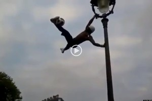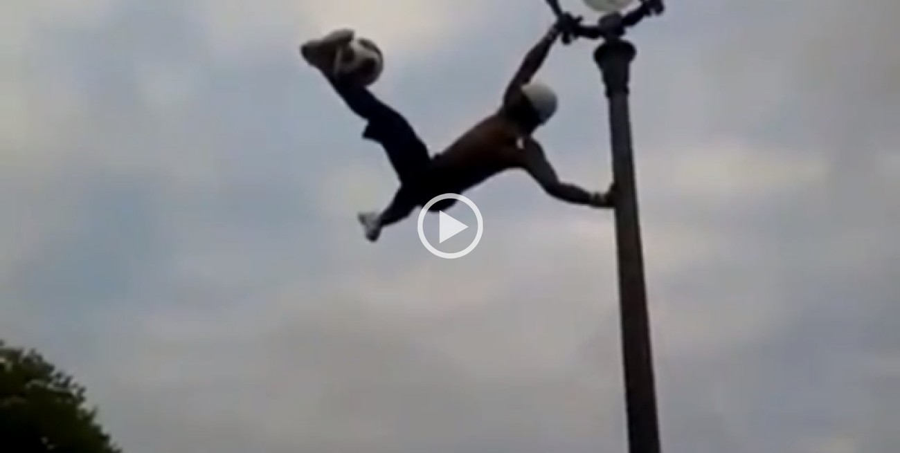 Así como si nada, se puso a hacer jueguitos arriba de un poste de luz.