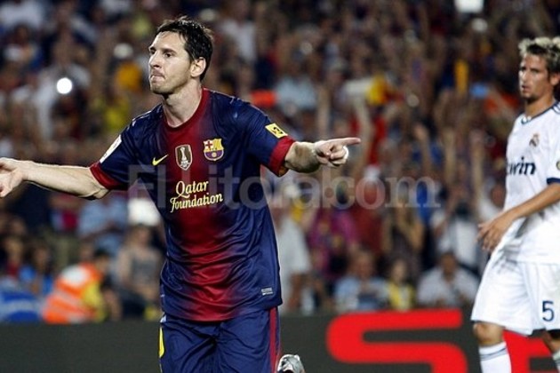 El crack rosarino Lionel Messi marcó hoy, de penal, uno de los goles en el triunfo de Barcelona sobre Real Madrid por 3 a 2, en el partido de ida de la Supercopa de España de fútbol que se llevó a cabo en el Camp Nou.