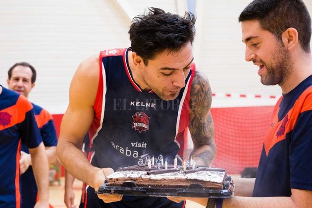 El basquetbolista santafesino cumple 35 años y desde el club vasco lo sorprendieron en pleno entrenamiento.