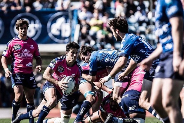 Gentileza EB Estanislao Bay en acción, con la camiseta del VRAC, entidad que lideraba el certamen superior español, en el momento de la suspensión por la pandemia.