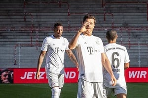 El polaco Robert Lewandowski (PT 39m, de tiro penal) y el francés Benjamin Pavard (ST 35m) marcaron los goles en el estadio Alte Försterei de Union Berlin, a puertas cerradas, con estrictas medidas de seguridad sanitaria por la pandemia de coronavirus.
