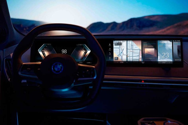 El control por voz y la función táctil de la pantalla curva de BMW se priorizaron como opciones de uso en el desarrollo del nuevo BMW iDrive. El número de botones e interruptores se ha reducido casi a la mitad. El conocido Controlador iDrive es el elemento de control principal de la consola central. El controlador táctil, diseñado con un acabado de efecto cristal extremadamente elegante para el BMW iX, está rodeado por un bisel pintado en Gold Bronze.