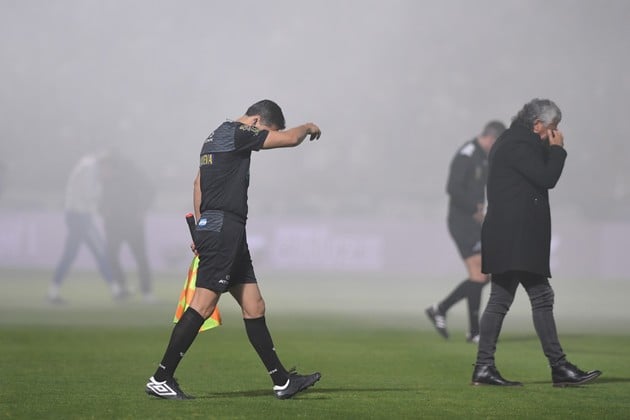 Mastrángelo determinó entonces que los jugadores y sus cuerpos técnicos se fueran a los vestuarios, algo que hicieron inmediatamente, mientras, que simultáneamente la desesperación ganaba las tribunas.