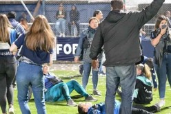 Los hinchas en las tribunas, al estar las puertas de salida cerradas, encontraron en el campo de juego la única vía de escape posible y cientos de ellos saltaron al césped desde los alambrados perimetrales.