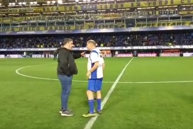 A pesar de los silbidos, que sufrió de rebote el actual vicepresidente de Boca Juan Román Riquelme, el hombre realizó una serie de gestos en supuesto agradecimiento a los hincha que seguían con los “chiflidos”.