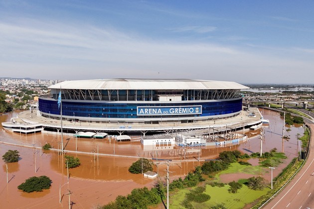 Los campos de entrenamiento del Internacional, su mayor rival, desaparecieron bajo las aguas en la víspera, pero la crecida todavía no había afectado al estadio Beira-Rio, ubicado al lado de esos campos y, como su nombre indica en portugués, está a orillas del río.