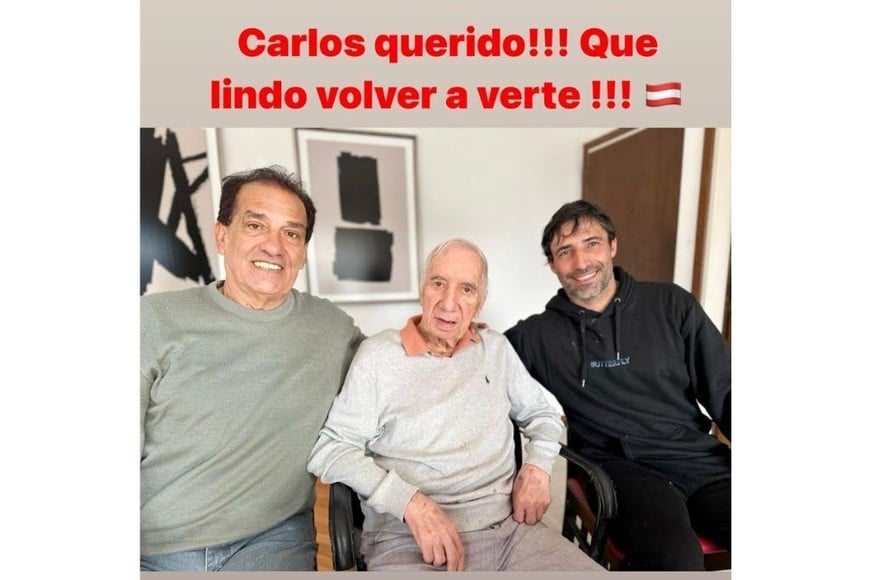 El ex delantero compartió en sus redes sociales una foto del encuentro. "Carlos querido, qué lindo volver a verte", agregó en Instagram junto a la imagen el exfutbolista quién también estuvo acompañado por Miguel Lemme, ex colaborador del Doctor y quien suele asistirlo en el día a día.
