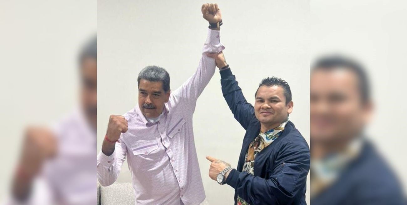 Maidana posó para una foto en la que aparece levantándole la mano izquierda al presidente chavista, a una semana de las elecciones presidenciales previstas para el domingo 28 y en medio de un clima político enrarecido, con denuncias de atentados formuladas por candidatos opositores y encuestas que dan primero al líder opositor Edmundo González Urrutia.