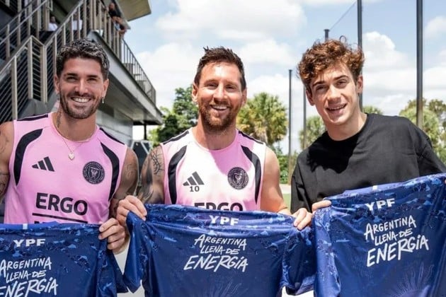 El piloto argentino compartió un encuentro con Lionel Messi y Rodrigo De Paul en el predio de entrenamiento del Inter Miami. La imagen fue difundida por YPF y generó una fuerte repercusión en redes sociales.