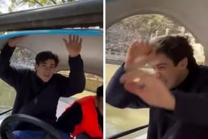 La situación cambió cuando intentó pasar por debajo de un puente. El argentino avanzaba a baja velocidad, pero calculó mal la altura y la embarcación terminó impactando contra la estructura, sin lograr pasar. El choque quedó registrado en un video y provocó la risa de quienes lo acompañaban, en una escena que rápidamente se volvió viral.