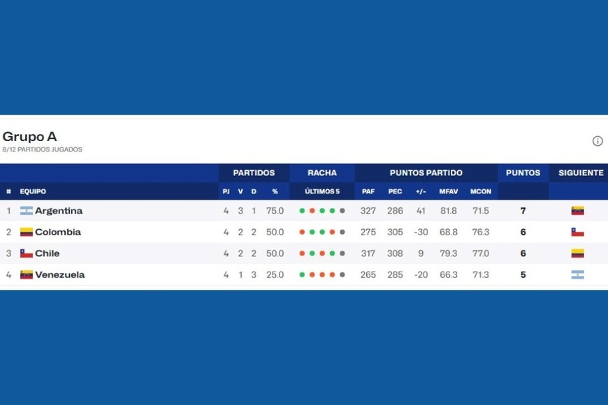 Los albicelestes llegan como líderes del grupo A, pero con una derrota acumulada ante Chile como visitante. En el marco de un proceso de reconstrucción, los dirigidos por Pablo Prigioni no estarían interesados en poner sobre la mesa la posibilidad de volver a quedar fuera de una competición, tal como sucedió con el Mundial 2023 y los Juegos Olímpicos 2024.