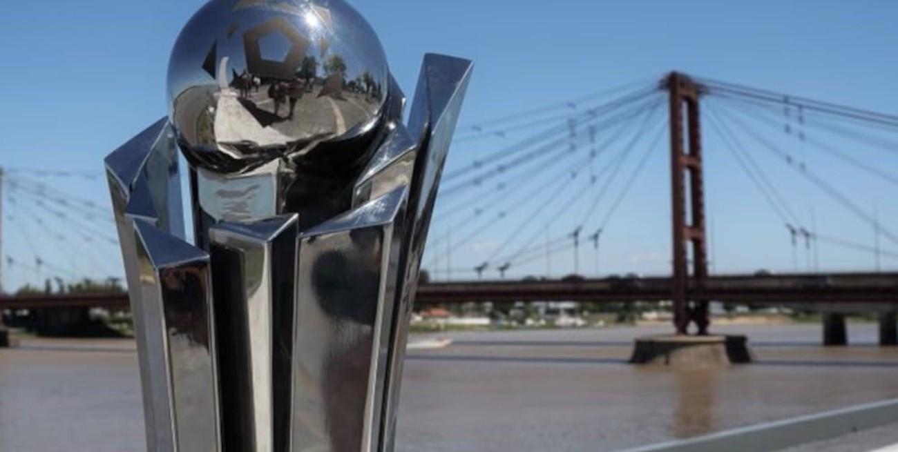 En la foto, el trofeo para el campeón con el fondo del Puente Colgante.