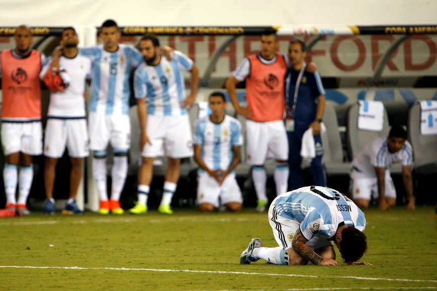 En la primera, en Santiago, un argentino (Jorge Sampaoli) había sido el verdugo en una definición por penales que postergó el sueño de Messi de ganar algo con la selección. En esta del año siguiente, armada por el centenario de la longeva competencia, el mismo rival en el camino (dirigido ahora por otro argentino, el santafesino Juan Antonio Pizzi) y reeditando la final. Otra vez empate en los 120 minutos y definición por penales: 4-2 para los chilenos y un agravante, el de Messi marrando su disparo desde los doce pasos. Peor imposible.