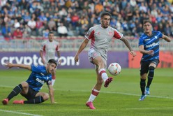 A los 21 minutos, Joel Amoroso ganó una pelota en la banda ante un defensa endeble, centró para Triverio quien definió y dio en Federico Fernández, pero no la pudieron sacar y el ex Unión puso el 1 a 0 con un zurdazo cruzado.