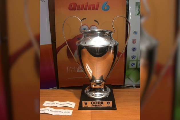 ¿Quién se la lleva este año?. La Copa Santa Fe, versión 2024, que se exhibe en cada pueblo y ciudad de la provincia, donde fueron 61 clubes los que participaron, con 106 partidos. Entre Juventud Pueyrredón de Venado Tuerto y la Asociación Deportiva Juventud de Esperanza estará el campeón. Crédito: Guillermo Di Salvatore